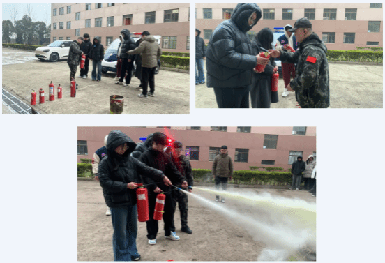 室外实操区,安保教官现场演示灭火器“提、拔、握、压”规范操作流程,详细讲解灭火器适用场景、注意事项及初期火情处置技巧。随后,师生们逐一上手实操,近距离体验灭火操作,在实战中掌握了核心消防技能,真正实现“懂理论、会操作”。