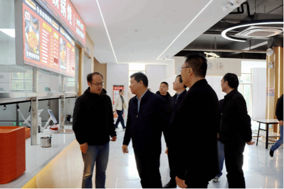 邱华康一行首先深入学院学生食堂,走进餐厅、窗口操作间等区域,仔细察看食堂环境卫生、食材采购公示、明厨亮灶建设、食品留样管理、餐具消毒流程等关键环节,与食堂负责人、窗口工作人员亲切交流,详细了解食堂日常运营、菜品供应、价格管理及师生用餐反馈等情况。他强调,校园食品安全是保障师生健康的底线工程,必须始终坚持“安全第一、预防为主”的原则,严格落实食品安全主体责任,规范食品加工操作流程,加强食材溯源管理和从业人员健康管理,确保每一份饭菜都安全、卫生、可口,让师生吃得放心、吃得安心。