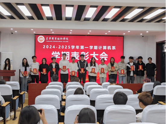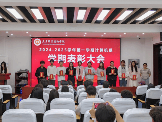 表彰环节随即展开。沈晶晶依次宣读了学习标兵、优秀学生干部、进步之星和三好学生名单。学习标兵们凭借扎实的知识功底和刻苦的学习态度,在众多同学中脱颖而出,成为勤奋学习的典范,他们用实际行动诠释了“学无止境”的深刻内涵;优秀学生干部们作为班级管理的中坚力量,认真负责、积极主动,在工作中充分发挥模范带头作用,为班级的建设和发展付出了辛勤努力;进步之星们用实际行动证明了“付出总有回报”的道理,他们不断超越自我,取得了显著进步;三好学生则在德、智、体等方面全面发展,展现了当代大学生的优秀风貌。这些获奖者们在过去一学期中用努力和汗水书写了属于自己的精彩篇章,他们的成绩得到了全体师生的高度认可与赞誉。