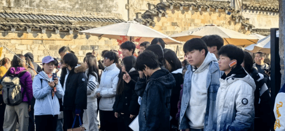 宏村以“牛形村”布局巧夺天工、以“四水归堂”理念承载人文的宏村,是徽派建筑最生动的“活教材”。清晨的南湖书院旁,薄雾尚未散尽,同学们已支起画板,凝神勾勒马头墙错落起伏的天际线。“这些高达数米的青砖墙体,不仅是实用的防火隔断,其阶梯式造型在晨光与暮色中形成的韵律美,正是室内空间层次设计的绝佳灵感来源。”带队导游站在承志堂前,指着精美的砖雕门楼介绍道。当看到12层青砖叠砌而成的工艺细节时,同学们纷纷俯身记录,传统建筑的结构逻辑与营造技艺在眼前变得清晰可触。